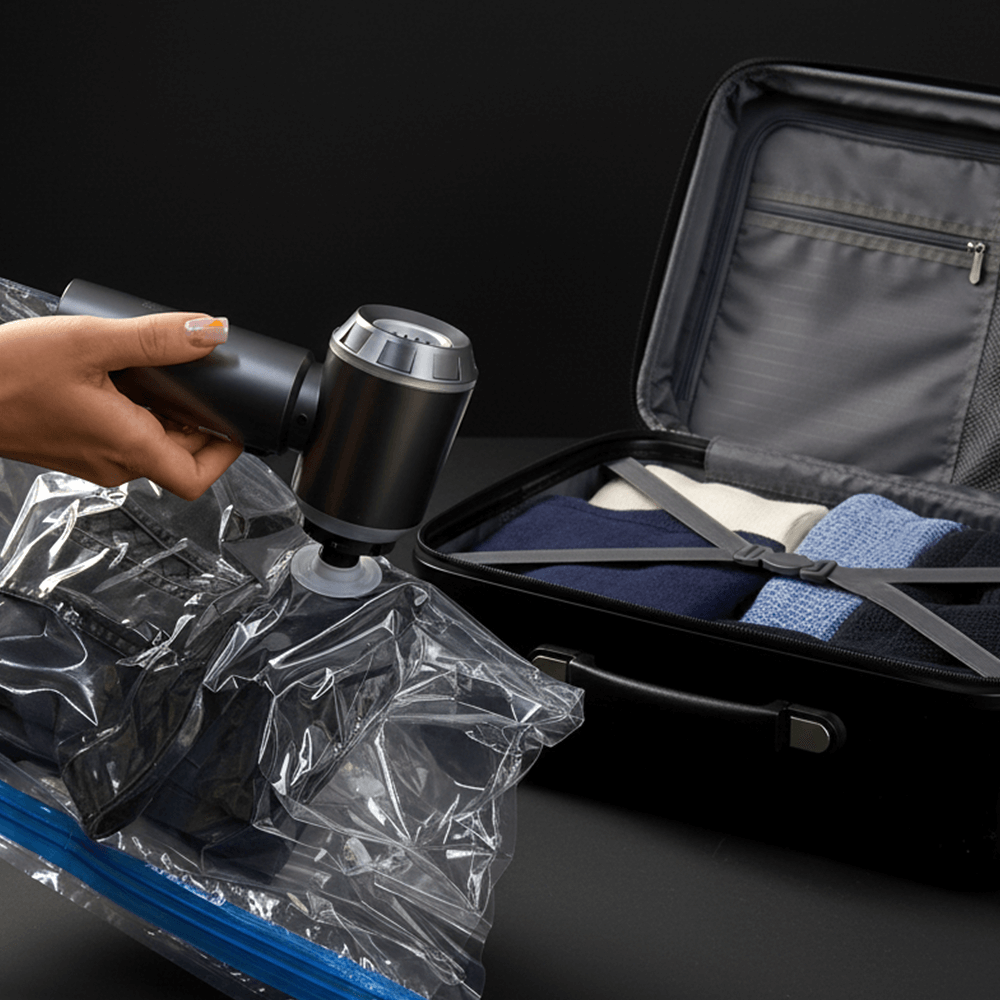 Мгновенно и мощно сжимает вещи в вакуум-пакетах — больше свободного места в доме и чемодане.