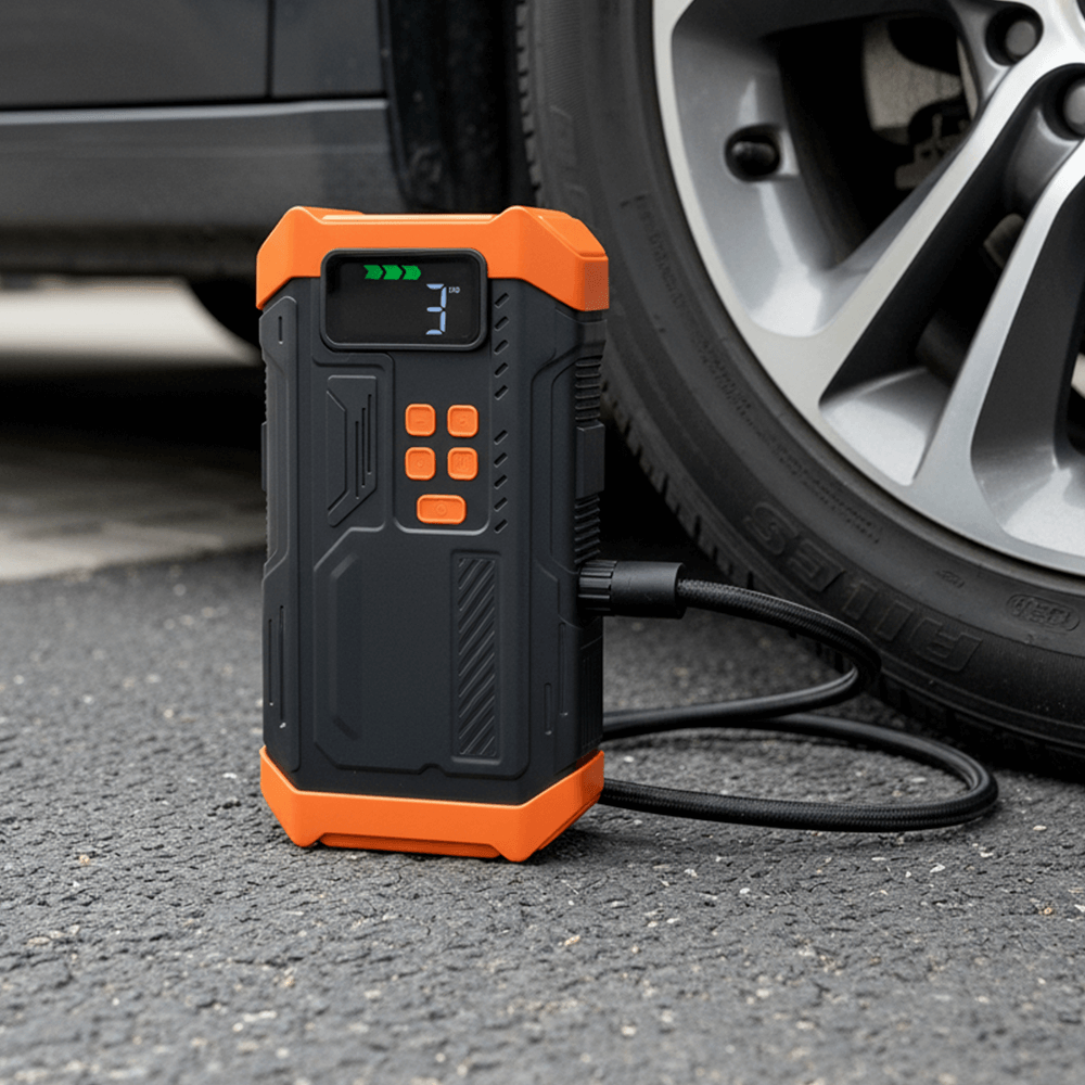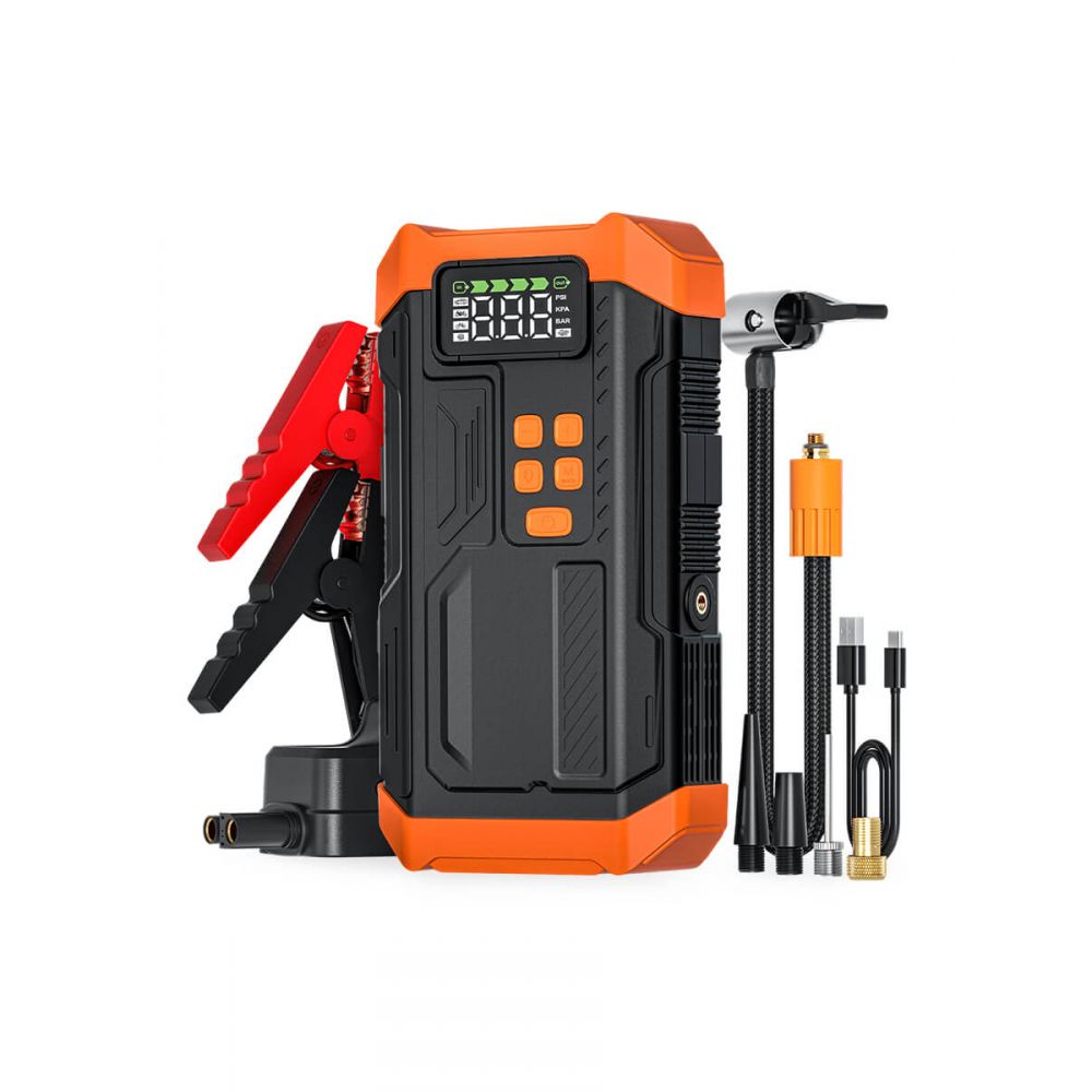 Встроенный компрессор с автоматическим измерением давления. Установка порогового давления для авто, мото, велосипедов и мячей автоматически отключит насос при его достижении и предотвратит перекачивание.
