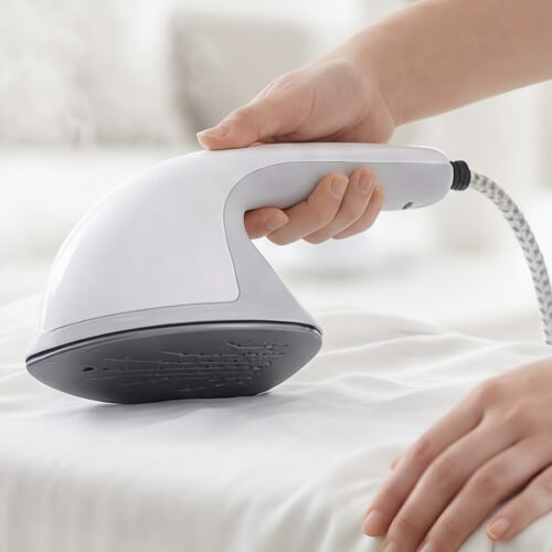 Пар под давлением быстро разглаживает ткани, защищает волокна от повреждений и убивает 99,999% бактерий.
